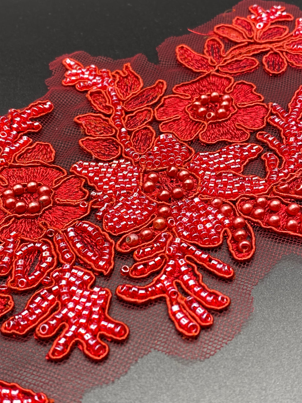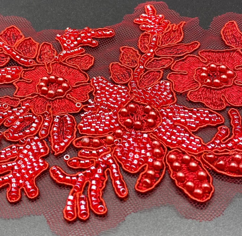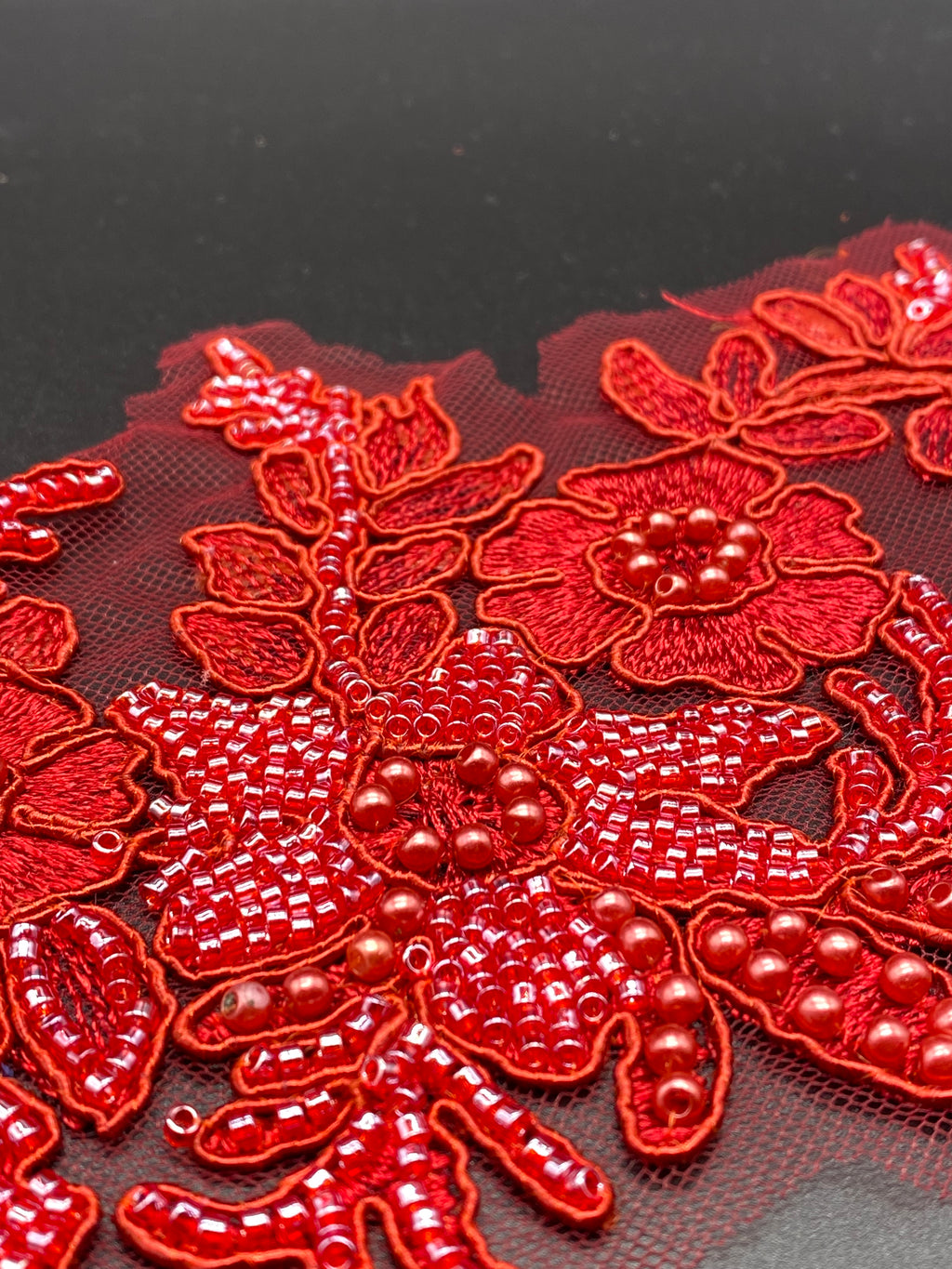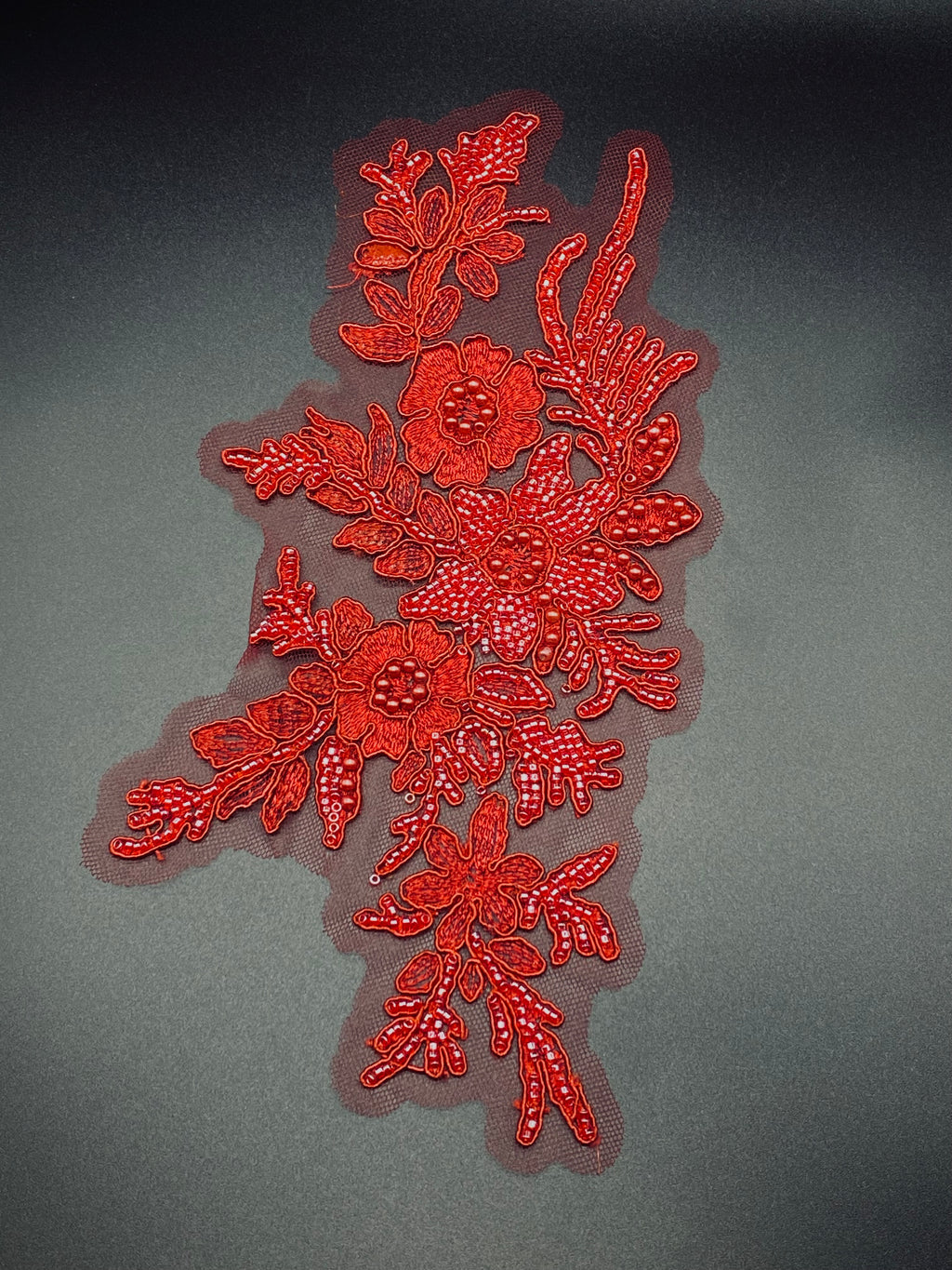 Applicazione (composta di due pezzi )in base tulle con ricamo  e perline. DX+ SIN