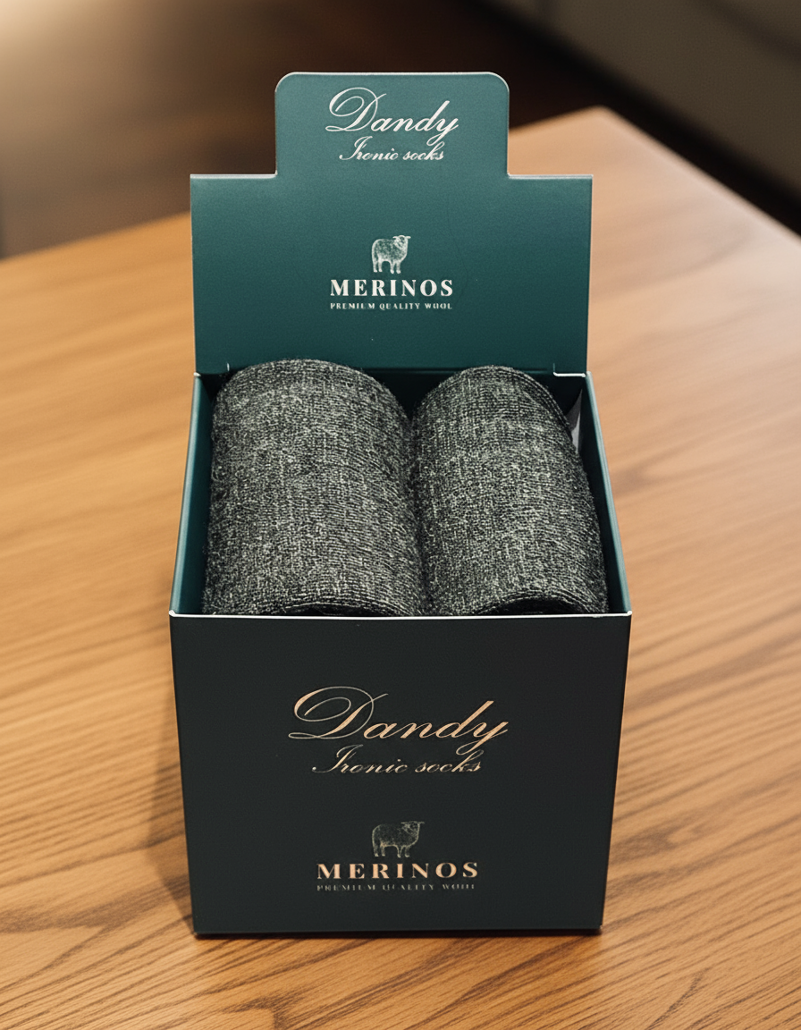 Eleganza e Comfort si incontrano nei DANDY IRONIC SOCKS, calzettoni lunghi da uomo realizzati con lana Merino Superwash (85%) e poliammide (10%) per garantire comfort, traspirabilità e resistenza.